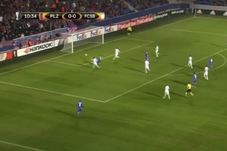 Minutul 38: Și totuși, e 0-0. Statistica arată zece șuturi spre poartă pentru Viktoria Plzen și opt pentru FCSB. Multe șuturi, multe ocazia, majoritatea venite pe gafe în cele două apărări.