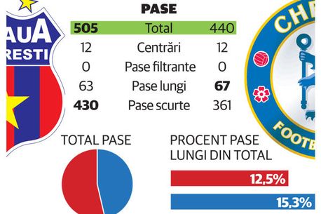 „Batem sigur, știu tot despre ei”, s-a destăinuit Laurențiu Reghecampf unor apropiați, înainte de meci. Siguranța, determinarea, așezarea din teren a elevilor săi, dar mai ales rezultatul final (1-0), i-au dat dreptate. În spatele serii frumoase de joi stau însă multe ore de studiu ale englezilor și alte multe ore de muncă ale steliștilor. Cu ajutorul site-ului de specialitate www.whoscored.com, ProSport a descifrat principalele aspecte tactice ale victoriei cu Chelsea!