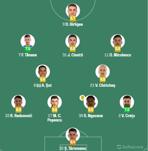 Cea mai slabă prestație a avut-o portarul Ștefan Târnovanu, care a fost notat cu 6.4.