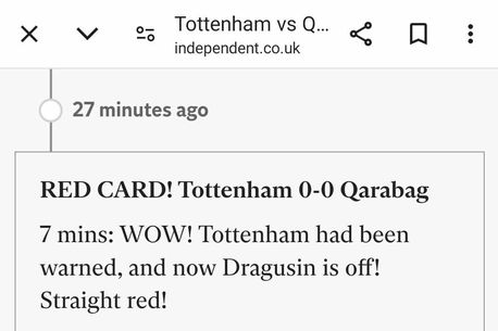 Este un fault clar și nu îi lasă nicio opțiune arbitrului Benoît Millot. E eliminat, iar Tottenham rămâne în 10 oameni!”, au scris cei de la independent.co.uk.