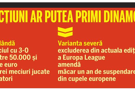 Raportul întocmit de Cruise lasă astfel o șansă mare lui Dinamo de a primi o amendă mare și două sau trei meciuri jucate fără spectatori sau la 200 de kilometri distanță, nu însă și decizia capitală a excluderii din cupele europene pentru o perioadă de până la cinci ani! Un alt atu al câinilor ar fi acela că, atunci când își judecă spețele de acest gen, Comisia de Disciplină a UEFA nu prea ține cont de antecedente, astfel că episoadele Elfsborg sau Nijmegen nu ar cauza o înăsprire a sancțiunilor. Din sursele ProSport, speța va fi judecată marți, în regim de urgență, de obicei, Comisia de Disciplină a forului european întrunindu-se joi. Oricum, ce este cert acum este că Dinamo va pierde cu 3-0 meciul.