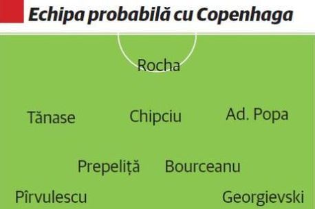 Programul aglomerat pe care Steaua îl are în această perioadă, cu meciuri din trei în trei zile pe trei fronturi, îl obligă pe Laurențiu Reghecampf să-și gestioneze cu grijă resursele. În mare, tehnicianul și-a schițat trei formule de echipă pentru Liga I, Cupa României, respectiv Europa League, însă oscilațiile de formă ale fotbaliștilor pe care îi antrenează îl obligă la modificări. Astfel, după ce la Stuttgart (2-2) a afișat o linie ofensivă cu Popa, Nikolic și Chipciu în sistemul 4-3-3, Reghe se gândește să schimbe registrul mâine seară. Astfel, inovația poate consta în trimiterea ca vârf împins a lui Rocha, susținut din spate de Chipciu.