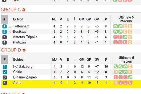 Deși au trecut doar patru etape din grupele Europa League, 5 cluburi și-au asigurat deja prezența în „16-imile” competiției. Salzburg, Celtic, Dinamo Moscova, Fiorentina și Legia au obținut confirmarea că vor participa în primăvara europeană, după rezultatele pozitive înregistrate în această etapă.  Titular din nou la Fiorentina, Tătărușanu a fost învins pentru prima dată în acest sezon de Europa League, în minutul 81 al partidei cu PAOK. Fostul goalkeeper al Stelei închisese poarta italienilor în primele 3 partide și ajunsese la 350 de minute fără gol primit.