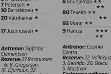 Rezerve: Rasmussen, Gregersen, Hjart. Hansen, Djurhuus, Sorensen, Hed. Hansen, Djordjevic