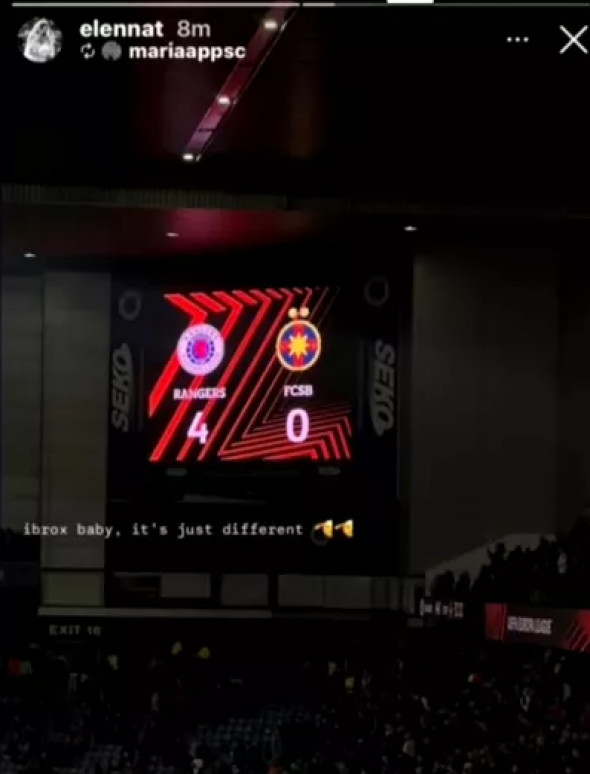 „Ibrox baby, it’s just different (n.r. Ibrox, dragă, e ceva diferit”, a scris ea. Postarea a dispărut ulterior de pe contul de Instagram, dar o captură începuse deja să circule în mediul online.
