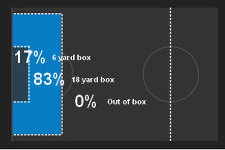 În cazul șuturilor la poartă, Ajax a preferat să ajungă în interiorul careului, din cele 6 șuturi expediate din această zonă, toate nimerind cadrul porții lui Tătărușanu. Steaua a avut însă probleme în a se apropia de careul de 6 metri al olandezilor, optând pentru șuturi de la distanță, din cele 9 doar unul fiind pe spațiul porții.