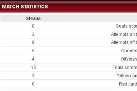 Două șuturi pe poartă față de doar unul al adversarilor (șut care în definitiv a făcut diferența) și 9 șuturi spre poartă comparativ cu doar 5 ocazii create de Twente sunt datele oferite de UEFA care o dau pe Steaua drept echipa care a dominat partida.