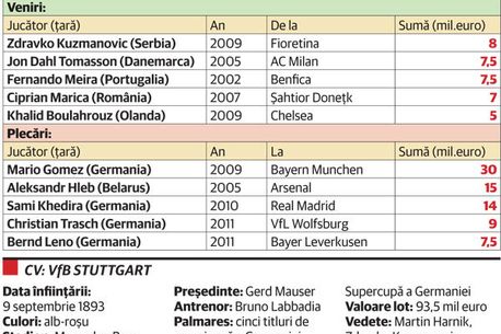 Pentru nemți, totul e simplu: fotbalul trebuie privit ca un business. Iar ca în orice afacere, cel mai important lucru este profitul. Aceasta este și filosofia conducerii lui VfB Stuttgart, adversara de azi a Stelei din grupa E a Europa League. În urmă cu 12 ani, problemele financiare ale șvabilor, care acumulaseră datorii de ordinul zecilor de milioane de euro, au cauzat demisia președintelui Gerhard Mayer-Vorfelder, aflat în funcție încă din 1974. Însă în doar doi ani, Stuttgart și-a revenit, a început să-și echilibreze balanța de plăți și să redevină o forță în Bundesliga. Principalul „responsabil” a fost antrenorul Felix Magath, cel care a început să mizeze tot mai mult pe tineri, o caracteristică menținută și în actuala formație de Bruno Labbadia.