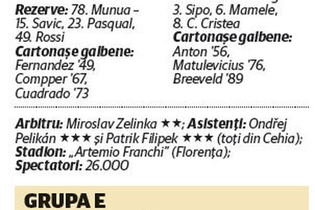 Stadionul „Artemio Franchi” a fost aproape plin aseară, iar acest lucru s-a datorat în mod special succesului Fiorentinei, din weekendul trecut, în fața lui Juventus (4-2). Italienii au câștigat pe teren propriu pentru prima dată după 15 ani în fața rivalei din Torino, astfel că suporterii au continuat să sarbătorească victoria contra adversarei din campionat și pe durata partidei cu Pandurii, cântând și scandând împotriva campioanei Italiei. În plus, pentru jocul de aseară, „violeții” au hotărât ca biletele de acces să vină la pachet cu cele de la finalul săptămânii trecute, pentru duelul cu Juventus. (Corina MLĂ‚DINOIU)