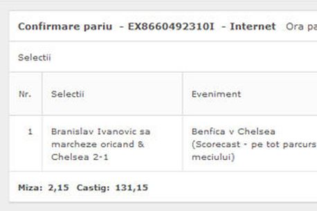 Un român s-a dovedit extrem de inspirat cu aproximativ o oră înainte de fluierul de start al finalei, când a ales să parieze că sârbul va marca oricând în timpul meciului cu Benfica, iar englezii se vor impune cu 2-1. Singurul regret al său este că a pariat prea puțin: la o miză de 2,15 lei și-a înmulțit banii de 61 de ori!