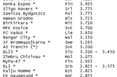 EL2, EL3 – reprezentantele Belgiei, Italiei, Spaniei și Portugaliei care încă nu și-au asigurat matematic accesul în Europa League