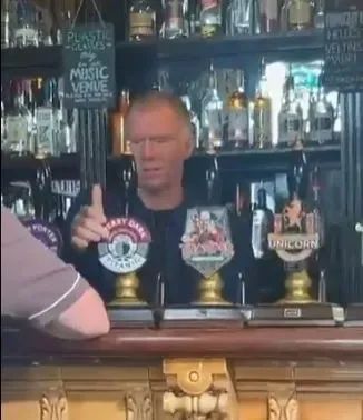 Într-un videoclip care a devenit rapid viral pe rețelele de socializare, legenda lui Manchester United apare cu o expresie ușor nedumerită în timp ce toarnă bere în halbele clienților.