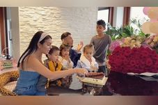 Familia Ronaldo-Rodriguez s-a fotografiat alături de tortul Georginei, cu portughezul ținându-și în brațe fetițele, iar sărbătorita, pe fiul lui cel mic, Mateo. Cristiano Jr. s-a așezat pentru poză, lângă tatăl său.
