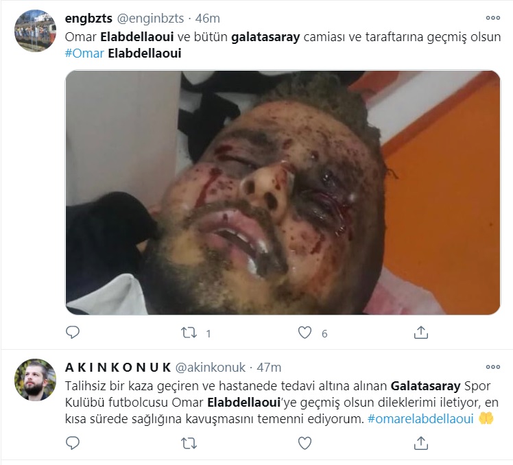 Vicepreședintele Galatasaray, Abdurrahim Albayrak, antrenorul Fatih Terim și căpitanul Arda Turan s-au alăturat lui Elabdellaoui în spital pentru a afla ultimele vești despre starea acestuia.