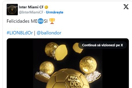 După ce a câștigat Balonul de Aur 2023, Leo Messi a fost felicitat de Inter Miami, echipă la care a ajuns după despărțirea de PSG. Clubul din Statele Unite ale Americii a postat pe rețelele de socializare un videoclip pentru a-l felicita pe starul argentinian, însă americanii au făcut o gafă uriașă care a devenit virală rapid.