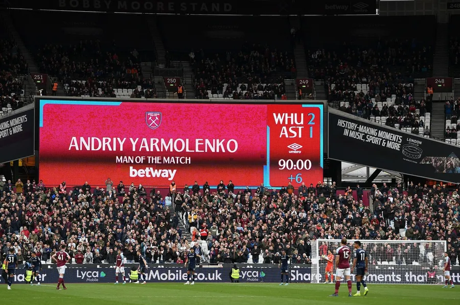 Andriy Yarmolenko s-a îndreptat spre fani după golul marcat împotriva lui Aston Villa. Felicitat imediat și de colegi, fostul jucător al Borussiei Dortmund a izbucnit în lacrimi, cu gândul la războiul din Ucraina.