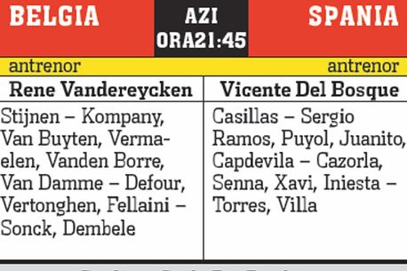 Diferența de valoare dintre cele două reprezentative este evidentă și dacă se face o estimare în plan financiar a loturilor. Numai cele două vârfuri ale oaspeților, Villa și Torres, fac împreună 115 milioane de euro, cu 20 mai mult decât cel mai bun „11“ belgian. În total, presa belgiană a estimat Spania la 324 de milioane de euro valoarea primului unsprezece, iar Belgia la 96.