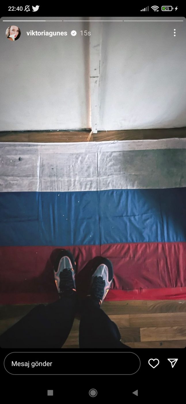 Ministrul rus al Sportului, Dmitry Shvishev, consideră inacceptabil gestul făcut de înotătoarea turcă, de orgine ucraineană, Viktoriya Zeynep Gune, de a posta o fotografie în care apare în timp ce calcă pe steagul Rusiei.
