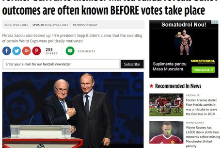 Afirmațiile făcute de Mircea Sandu la ProSport LIVE în legătură cu uriașul scandal de corupție în care este implicată FIFA și mai mulți oficiali ai ei, printre care și președintele Sepp Blatter, în prezent suspendat din funcție, au fost preluate de publicația Daily Mirror, în ediția online.