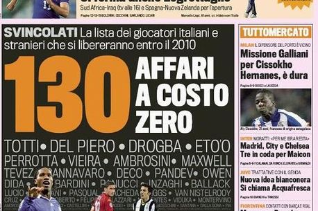Gazzetta dello Sport prezinta în ediția de duminică o listă impresionantă de jucători care la finalul sezonului viitor ar deveni liberi de contract. Asta înseamnă că oricine dorește să-i aibă pe acești super jucători trebuie doar să le plătească salariile.