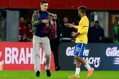 Un alt moment important s-a petrecut la amicalul Austria – Brazilia, câștigat de sudamericani cu 2-1. Toți ochii au fost ațintiți asupra lui Neymar, cel mai important fotbalist brazilian la ora actuală. Atacantul a fost înlocuit în minutul 90+2, dar înainte de a-i face loc lui Marquinhos, superstarul Barcelonei și-a făcut timp pentru un gest inedit. Un fan intrase pe teren, cu un tricou un mână și îi cerea fotbalistului un autograf. Neymar a încercat să-i satisfacă dorința, dar nu a mai apucat, suporterul respectiv fiind scos de pe gazon de forțele de ordine.