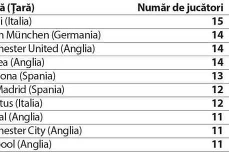 TOP 10 cluburi cu cei mai mulți jucători la CM 2014