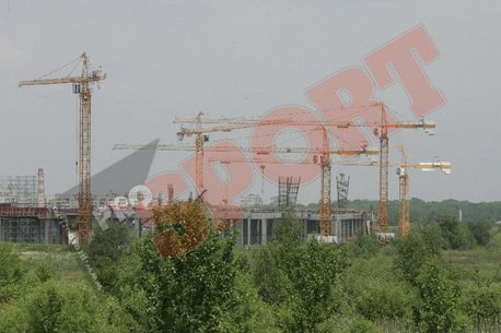 șantierului unde se construiește stadionul ce urmează să găzduiască
