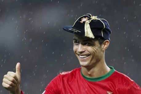 Înainte de fluierul de start al meciului dintre Portugalia și Irlanda de Nord din preliminariile CM 2014, Ronaldo a fost premiat de federația lusitană pentru cea de-a 100 prezență a sa în prima reprezentativă. Luis Figo a fost cel care i-a decernat lui CR7 o plachetă care să marcheze momentul, dar și pălăria tradițională care le este decernată fotbaliștilor ce ating 100 de selecții.