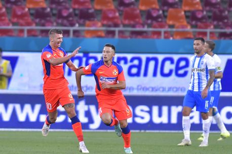 Bucurie a fotbalistilor stelisti dupa un gol marcat cu Florin Lucian Tanase si Olimpiu Vasile Morutan in meciul de fotbal dintre FCSB si Universitatea Craiova, contand pentru Liga 1 Casa Pariurilor, desfasurat pe Arena Nationala din Bucuresti, duminica 25 iulie 2021. © FOTO:Razvan Pasarica/SPORT PICTURES