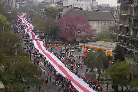 Chiar dacă un steag de asemenea dimensiuni nu s-a mai văzut pe vreo arenă din lume, acesta nu reprezintă un record în materie. Suporterii lui River au intrat în Cartea Recordurilor cu un steag alb-roșu de 7.829 de metri lungime, desfășurat în Buenos Aires, între locul unui fost stadion al echipei și arena Monumental (foto dreapta). River Plate a depășit, la finalul lui 2012, recordul ce era deținut până atunci de Rosario Central, club care a confecționat un steag cu lungimea de 4.300 de metri la împlinirea a 120 de ani de la înființare. Firesc, cele două steaguri nu au putut fi desfășurate pe stadion, astfel că inițiativa fanilor lui Nacional rămâne un reper în acest sens.