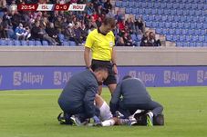 Min. 20. Nicolae Stanciu acuză dureri în zona inghinală după ce a fost lovit de un adversar și primește îngrijiri medicale pe teren.