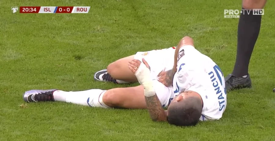 Nicolae Stanciu acuză o accidentare în meciul Islanda – România. Captură foto: Pro TV