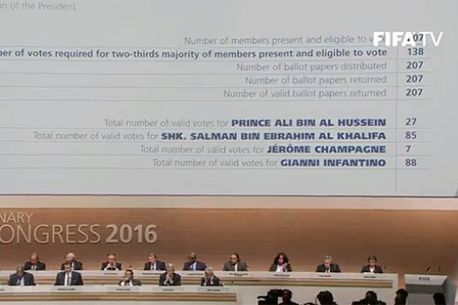 Infantino avea nevoie de o majoritate simplă (50% + 1), adică 104 voturi, pentru a câștiga alegerile.