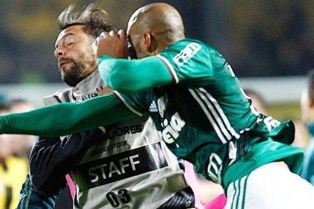 Împrumutat la Palmeiras de la Inter, brazilianul Felipe Melo a împărțit pumni pe teren. Acesta nu a scăpat fără nici o lovitură, adversarii au început să îl alerge pe teren, moment în care forțele de ordine au intervenit.