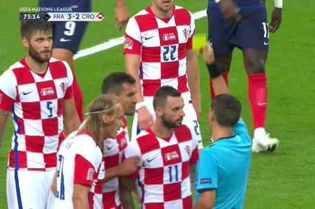 Croații s-au năpustit apoi asupra arbitrului român. Lovren și Brozovic au fost ambii avertizați cu galben, după ce s-au dus amenințător la Ovidiu Hațegan.