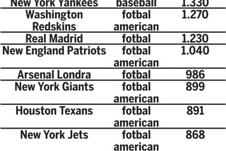 Studiul realizat de Forbes a vizat și desemnarea celui mai valoros club sportiv din lume, iar Manchester United domină și acest top. „Cei 330 de milioane de fani din întreaga lume și performanțele constante ale echipei sunt principalele avantaje ale englezilor”, explică un redactor al revistei Forbes. Sportul american își ia partea leului, dominând următoarele poziții de pe podium, prin Dallas Cowboys (fotbal american, 1,45 mld. euro) și New York Yankees (baseball, 1,33 mld. euro).