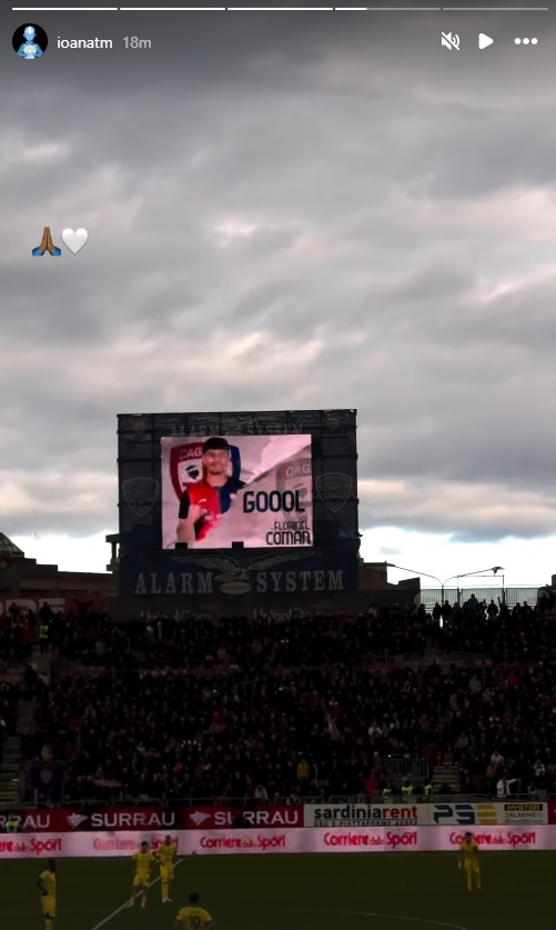 Concret, Ioana a fotografiat imaginea cu ecranul imens poziționat deasupra unei tribune a stadionului Unipol Domus din Cagliari. Pe acesta era afișată poza soțului ei și descrierea „GOOOL”.