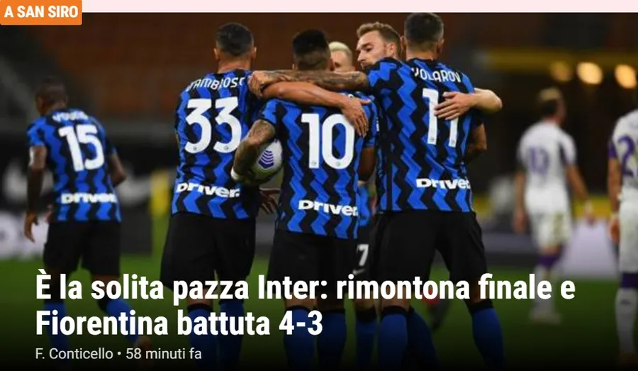 „Inter, nebunia obișnuită”, au scris cei de la Gazzetta dello sport, imediat după meci.