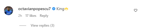 Fostul fotbalist de la FCSB a postat pe rețele de socializare decizia pe care a luat-o de a semnat cu Terengganu, iar Octavian Popescu a reacționat imediat. „Perla” lui Gigi Becali l-a felicitat pe fostul său coleg printr-un comentariu: „Regele”, a scris Tavi Popescu, care a mai adăugat și un emoticon cu o coroană.