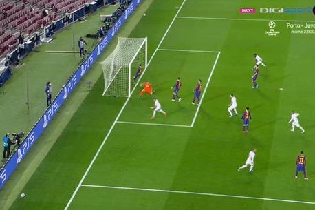 În minutul 32, Marco Veratti, aflat în careul Barcelonei, i-a oferti o pasă perfectă, lui Kylian Mbappe, printre fundașii adverși. Mbappe nu a stat pe gânduri și a pătruns în careul „mic”, de unde l-a executat pe portarul Ter Stegen.
