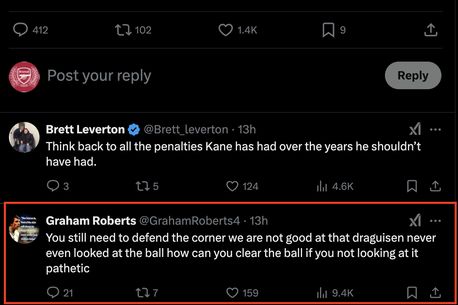 În secțiunea de comentarii, printre cei care i-au răspuns s-a regăsit și Graham Roberts, legendă a clubului Tottenham, care a câștigat alături de londonezi două Cupe ale Angliei, o Supercupă și Cupa UEFA. Asemenea lui Ilie Dumitrescu, Roberts a făcut abstracție de felul în care a fost acordat cornerul și l-a țintit pe Drăgușin: