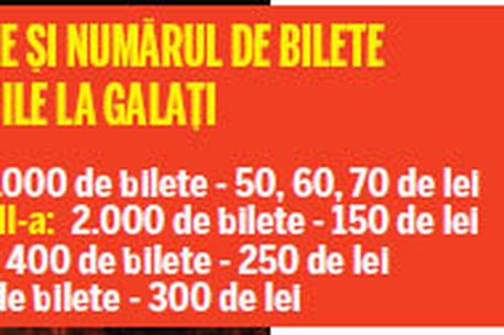 Pentru a veni în ajutorul fanilor din Galați, oficialii campioanei au pus în vânzare 7.000 de bilete la stadionul Oțelul până mâine, la ora 14:00, restul tichetelor comercializându-se la Național Arena.