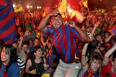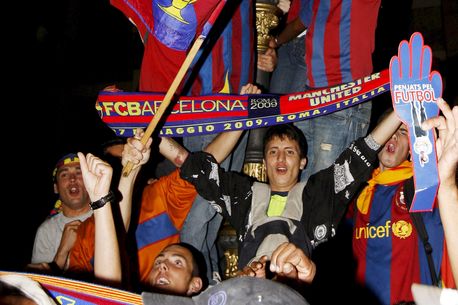 Aproximativ 750.000 de fani ai echipei FC Barcelona au sărbătorit, aseară, pe străzile orașului catalan, alături de jucătorii pregătiți de Josep Guardiola. "Ole Ole Campeones!, Barca, Barca, Barca!", au scandat fanii Barcelonei. După ce au salutat mulțimea în culorile "blaugrana", mergând mai mult de trei ore într-un autobuz decopertat prin centrul capitalei Cataluniei, jucătorii echipei FC Barcelona au fost primiți în triumf pe arena Camp Nou de peste 90.000 de fani entuziaști. "Viva Barca! Viva Catalunia", au scandat, în limba catalană, jucătorii Barcelonei care au trecut unul câte unul în dreptul unui microfon și s-au declarat catalani, inclusiv căpitanul Carles Puyol, atacantul camerunez Eto'o, francezii Thierry Henry și Eric Abidal, sau argentinianul Lionel Messi.
