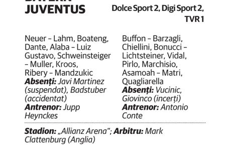 Chiar dacă Bayern se află într-o formă excelentă și a „ucis” deja Bundesliga, sfertul dintre bavarezi și Juventus (marți seară, ora 21.45, în direct pe TVR