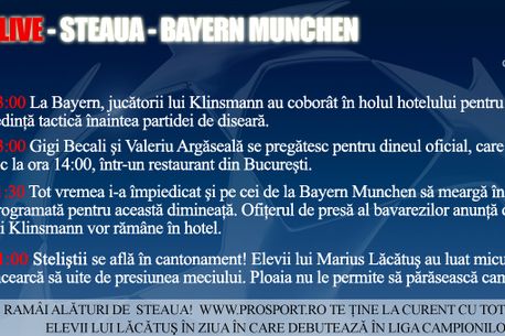 Becali a prins și el din zbor momentul și nu s-a sfiit să le atragă atenția jucătorilor că dacă alții pot, și ei ar trebui să reușească surpriza cu Bayern: "Victoria CFR-ului va da aripi Stelei" a recunoscut încrezător Becali. Lăcătuș vrea primăvara europeană, simte că după doi ani consecutiv în grupe se poate mai mult!