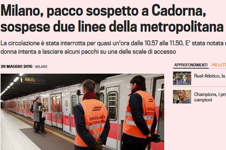 Gazzetta dello Sport anunță că circulația pe două linii de metrou a fost suspendată timp de aproape o oră, între 10:57 și 11:50 (ora locală), după ce o femeie ar fi lăsat un pachet suspect pe scările de acces.