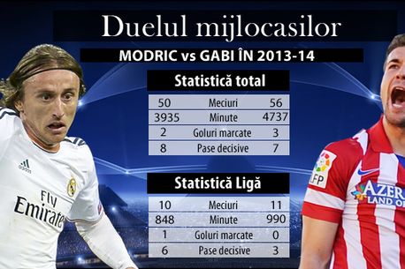 Folosit de Mourinho pe un post în care nu se simțea în largul său, Modric a părut în primul an la Real drept un jucător care nu s-a adaptat pe „Bernabeu”. La fel ca Di Maria, în mandatul lui Ancelotti, Modric s-a comportat însă excelent. Exonerat de unele responsabilități defensive, croatul a devenit „creierul” de la mijlocul terenului pentru Real. Deși cifrele nu-l recomandă, importanța lui Modric în „11”-le Realului este incontestabilă. Produs al academiei de fotbal a celor de la Atletico, Gabi a fost cedat la Getafe și apoi la Zaragoza înainte să se întoarcă în 2011 pe „Vicente Calderon”. Calitățile sale de lider l-au recomandat pentru postul de căpitan, pe care Simeone i l-a oferit în 2012.