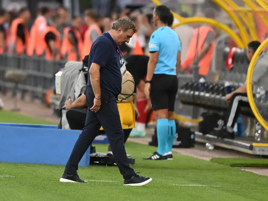Gheorghe Hagi suparat dupa un gol incasat de catre constanteni la meciul de fotbal dintre FC Sferiff Tiraspol si FCV Farul Constanta, din cadrul Preliminariilor Ligii Campionilor, desfasurat pe Stadionul Sheriff din Tiraspol, marti 18 iulie 2023. © FOTO:Razvan Pasarica/SPORT PICTURES