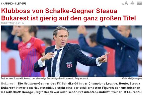 „Lipsa de experiență a românilor va fi compensată cu motivație. După 1986, clubul „militar” vrea să cucerească un nou titlu european major. Atunci, portarul Stelei, Duckadam, a reușit „Miracoloul” de la Sevilla, în finala CCE, când a apărat toate cele patru penalty-uri are Barcelonei și Steaua s-a impus cu 2-0. Deși Steaua e cel mai de succes club de fotbal din România, nu a mai reușit să ajungă la nivelul atins la mijlocul anilor 80″, scriu nemții, care îi fac și un portret lui Gigi Becali, despre care spun că e un „Berlusconi al României„.