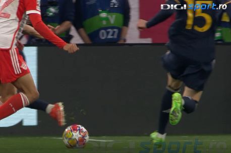 Lucas Vasquez a întins piciorul în fața lui Jamal Musiala și jucătorul bavarezilor a căzut în careul advers. Centralul a arătat imediat punctul cu var fără ezitare. Spaniolii au contestat vehement decizia arbitrului, dar nici VAR nu a intervenit, astfel că Harry Kane a transformat lovitura de pedeapsă și a întors scorul.